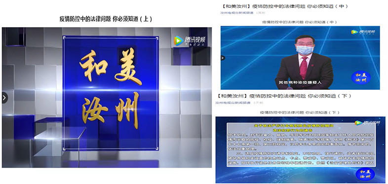 為引導(dǎo)全市廣大人民群眾深入了解疫情防控工作有關(guān)的法律知識(shí),促進(jìn)疫情防控工作依法有序開展,由汝州市法學(xué)會(huì)指導(dǎo),聯(lián)合汝州電視臺(tái)新聞綜合頻道法治專欄《和美汝州》,制作播出專題節(jié)目《疫情防控工作法律問題,你必須知道》。