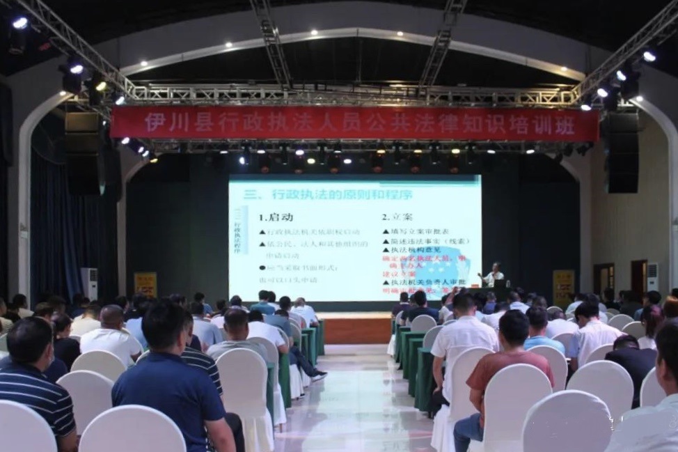為進(jìn)一步加強(qiáng)行政執(zhí)法隊(duì)伍建設(shè),提高執(zhí)法人員素質(zhì)。8月5日上午,伊川縣法學(xué)會(huì)舉辦2020年度全縣行政執(zhí)法人員公共法律知識(shí)培訓(xùn)班。培訓(xùn)班邀請(qǐng)洛陽市法學(xué)會(huì)副會(huì)長、市司法局副局長楊尚輝,全省服務(wù)型行政執(zhí)法講師、洛陽市司法局依法行政指導(dǎo)科王為天為大家授課。全縣行政執(zhí)法單位主抓工作的副職以及行政執(zhí)法人員650名參加培訓(xùn)。