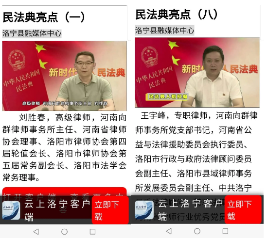7月20日以來,為扎實(shí)做好《中華人民共和國民法典》的學(xué)習(xí)宣傳,洛寧縣法學(xué)會充分依托縣電視臺融媒體中心在云上洛寧APP開設(shè)《民法典亮點(diǎn)》系列專題講座,深入普及法律知識,在全縣興起學(xué)習(xí)宣傳《民法典》的熱潮。