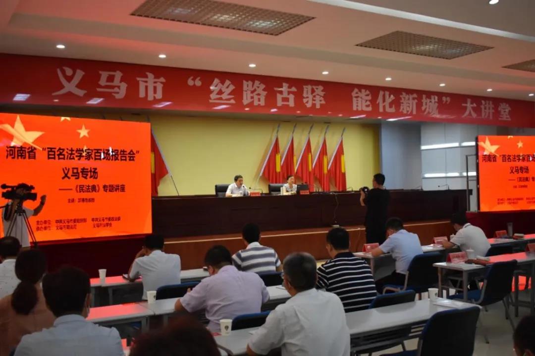 8月12日下午,河南省“百名法學(xué)家百場報(bào)告會(huì)”義馬市專場開講,省雙百活動(dòng)民法典宣講團(tuán)團(tuán)員、省法學(xué)會(huì)自貿(mào)區(qū)法治研究中心副主任、鄭州大學(xué)法學(xué)院教授、博士生導(dǎo)師郭德香作民法典專題輔導(dǎo),義馬市委常委、政法委書記、法學(xué)會(huì)會(huì)長鄒曉東主持,義馬市四大班子領(lǐng)導(dǎo)、市直各單位黨政正職、各社區(qū)書記和組織部下派第一書記共200余人參加。