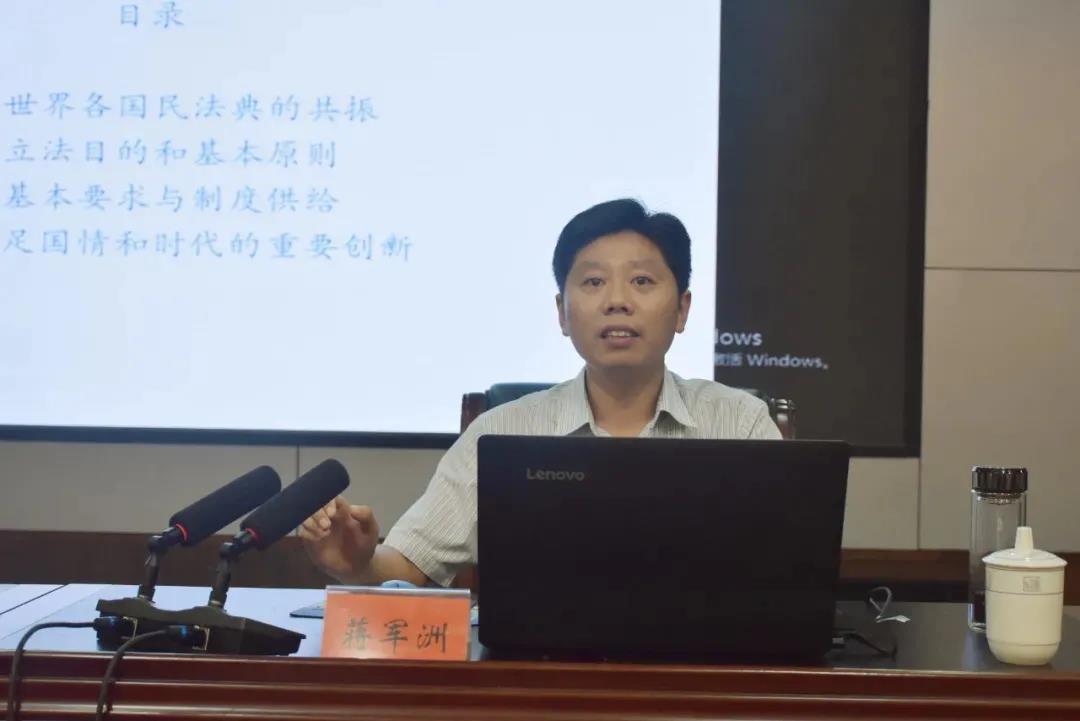 會上,蔣教授從我國民法典與世界各國民法典的共振、我國民法典的立法目的和基本原則、我國民法典的基本要求與制度供給和我國民法典立足國情和時(shí)代的重要?jiǎng)?chuàng)新等4個(gè)方面內(nèi)容進(jìn)行了詳細(xì)的講解。授課內(nèi)容思想深刻、內(nèi)容豐富、視野開闊、條理清晰、深入淺出,具有很強(qiáng)的理論性、針對性,對全市各級黨員干部全面深入學(xué)習(xí)、宣傳、實(shí)施民法典,運(yùn)用民法典維護(hù)人民群眾權(quán)益、化解社會矛盾、促進(jìn)社會和諧穩(wěn)定具有重要的指導(dǎo)作用。