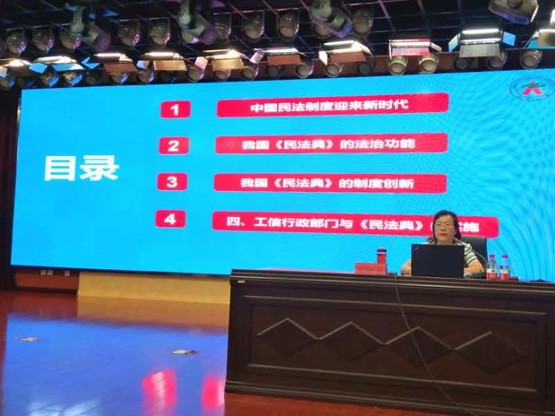 會上,郭德香教授以《<中華人民共和國民法典>的法治功能和制度特色》為題,運用理論解讀和案例解析相結(jié)合的方式,從民法典的劃時代意義、基本功能、鮮明特色、與工信行政部門依法行政的關(guān)系等方面進行了詳細解讀。講座脈絡清晰、重點突出、深入淺出、緊密聯(lián)系實際,對黨員干部進一步學好用好民法典具有深刻的指導意義,對掀起民法典學習熱潮和依法行政工作起到了積極的推動作用。
