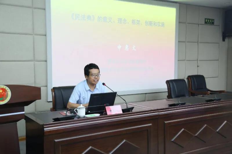 省雙百活動民法典宣講團團員、省法學會民法學研究會副秘書長、鄭州大學法學院民商法教研室主任申惠文副教授作專題輔導。申惠文副教授從民法典頒布實施的重大意義、民法典的基本理念和框架體系等方面做了系統(tǒng)的梳理和闡述,從民法典的重大制度創(chuàng)新、與法治政府建設關系等方面進行了生動的講解,內(nèi)容豐富、論述透徹、引人入勝,對深入學習好民法典、貫徹落實好民法典具有很強的針對性和指導性。