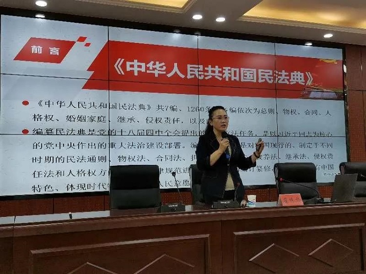 河南明辨律師事務所執(zhí)行主任崔姝娉律師為大家解讀民法典,崔律師從民法典的立法經(jīng)過、重大意義、總體要求和基本原則、主要內(nèi)容、案例分析、實踐運用等方面,通過生動的案例向大家解讀了民法典的相關(guān)條文,并針對一些熱點問題,如婚姻、財產(chǎn)、繼承、收養(yǎng)等內(nèi)容進行了詳細講解,向大家普及了民法典中關(guān)于婚姻家庭方面的法律知識。
