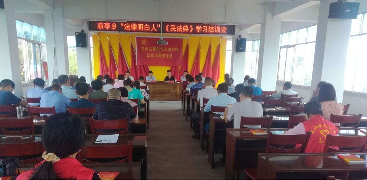 9月12日下午,光山縣法學(xué)會工作站組織法律志愿服務(wù)隊(duì)人員到?jīng)鐾むl(xiāng)開展民法典培訓(xùn)。授課律師通過自身辦理特色突出的農(nóng)村實(shí)際案例,以案釋法,對新頒布的民法典進(jìn)行關(guān)聯(lián)解讀,使法律明白人深化了對民法典法律知識的理解和掌握,進(jìn)一步提高了鄉(xiāng)村干部法律素質(zhì)和依法辦事水平,間接性的提高了群眾依法維護(hù)自己合法權(quán)益的可靠性。培訓(xùn)會同時(shí)要求,各村法律明白人要在群眾中及時(shí)、適時(shí)宣傳法律知識,為涼亭鄉(xiāng)的法治鄉(xiāng)村建設(shè)起到很大的促進(jìn)作用。