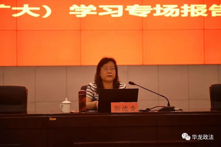 9月25日上午,濮陽市華龍區(qū)舉辦華龍區(qū)"百名法學家百場報告會”民法典宣講暨區(qū)委理論中心組(擴大)學習專場報告會。省雙百活動民法典宣講團團員、省法學會自貿(mào)區(qū)法治研究中心副主任、鄭州大學法學院教授郭德香做輔導報告。會議由區(qū)長丁國梁主持,區(qū)四大班子、全體縣級干部,區(qū)直單位主要負責同志、各鄉(xiāng)鎮(zhèn)辦黨(工)委書記或鄉(xiāng)(鎮(zhèn))長街道辦主任及部分班子成員220余人參加。