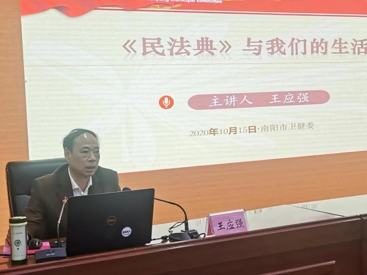 10月15日,“百名法學(xué)家百場報(bào)告會”暨南陽市衛(wèi)健委理論學(xué)習(xí)中心組法制學(xué)習(xí)專題報(bào)告會召開。會議由衛(wèi)健委黨組書記閆廣州主持,委領(lǐng)導(dǎo)班子成員、機(jī)關(guān)全體人員、委屬各單位負(fù)責(zé)人參加學(xué)習(xí)。中共南陽市委黨校政法教研室主任王應(yīng)強(qiáng)教授以《民法典與我們的生活》為題作專題報(bào)告。