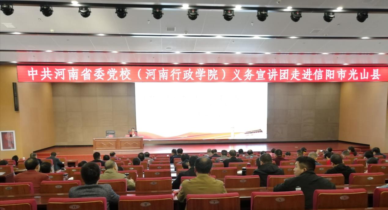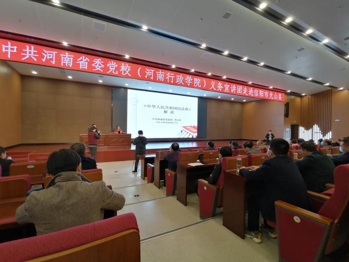 11月18日上午,中共河南省委黨校(河南行政學院)義務宣講團在光山縣委黨校舉行“百名法學家百場報告會”法治宣講活動,光山縣二百余名黨員干部和法學會會員現(xiàn)場聆聽了省委黨校法學教研部李昌鳳副教授所作的專題報告。