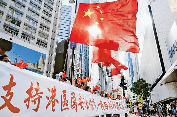 2020年6月30日,十三屆全國(guó)人大常委會(huì)第二十次會(huì)議表決通過(guò)《中華人民共和國(guó)香港特別行政區(qū)維護(hù)國(guó)家安全法》。這部法律對(duì)香港維護(hù)國(guó)家安全制度機(jī)制作出了法律化、規(guī)范化、明晰化的具體安排,為維護(hù)國(guó)家安全和香港長(zhǎng)治久安、長(zhǎng)期繁榮發(fā)展,保障香港居民依法享有的權(quán)利和自由,保護(hù)外國(guó)人在香港的合法權(quán)益,增強(qiáng)外國(guó)投資者對(duì)香港的信心,確?!耙粐?guó)兩制”事業(yè)行穩(wěn)致遠(yuǎn),提供了法律支撐和根本保障。圖為6月30日,香港市民在銅鑼灣街頭支持實(shí)施香港國(guó)安法。 新華社記者 王申/攝