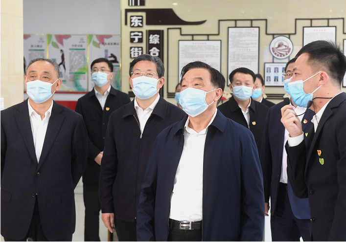 5月19日,中共中央政治局委員、全國人大常委會副委員長、中國法學會會長王晨在河北省張家口市調(diào)研并出席“2021年青年普法志愿者法治文化基層行”座談會。戎珊 攝