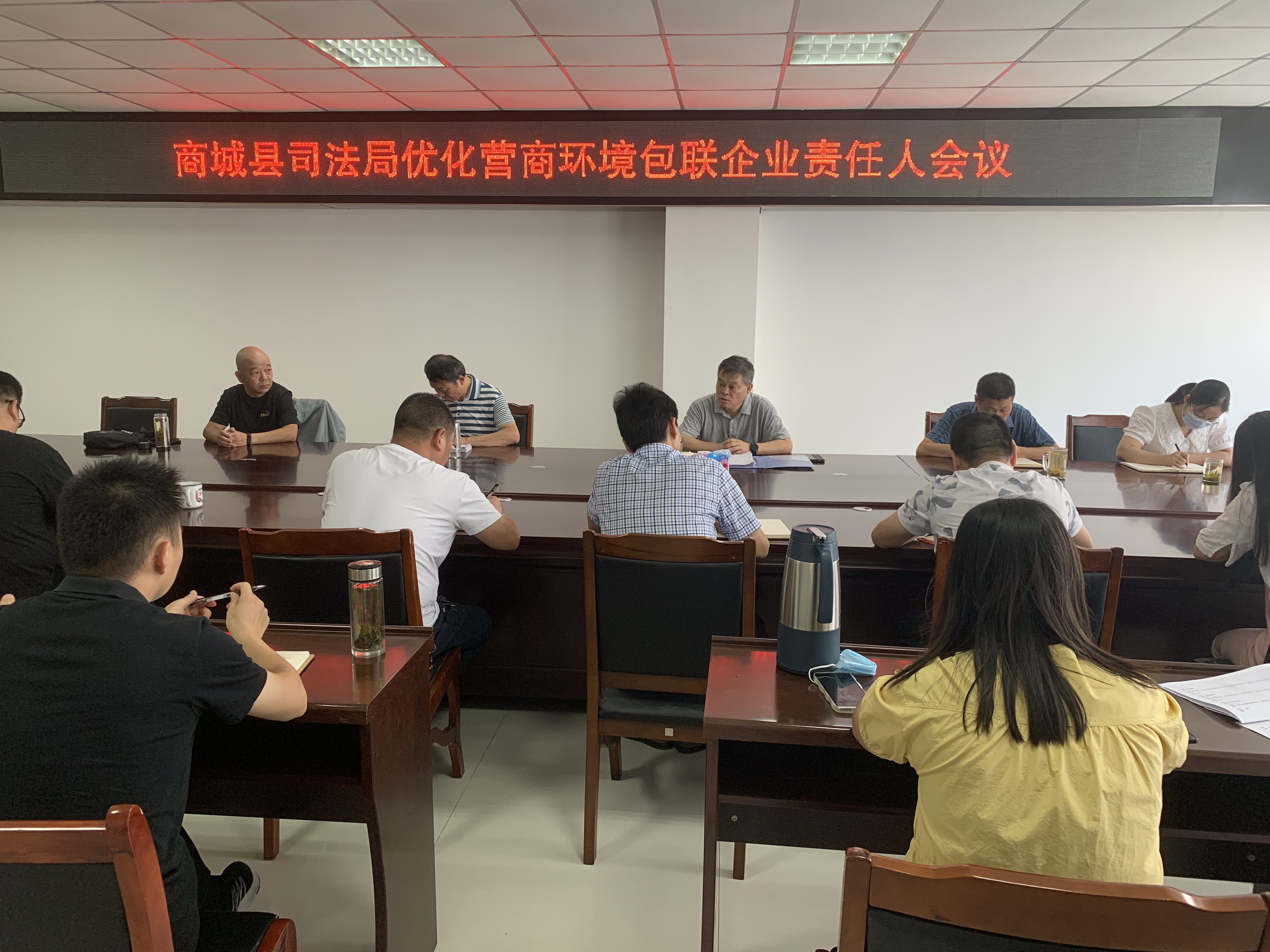 為進一步優(yōu)化營商環(huán)境,發(fā)揮司法行政職能優(yōu)勢,促進企業(yè)持續(xù)健康發(fā)展,8月4日上午,商城縣司法局在二樓會議室召開優(yōu)化營商環(huán)境包聯(lián)企業(yè)責(zé)任人會議,對持續(xù)做好企業(yè)包聯(lián)工作進行安排部署。會議由局黨組書記、局長王水主持,26名包聯(lián)企業(yè)責(zé)任人參加會議。