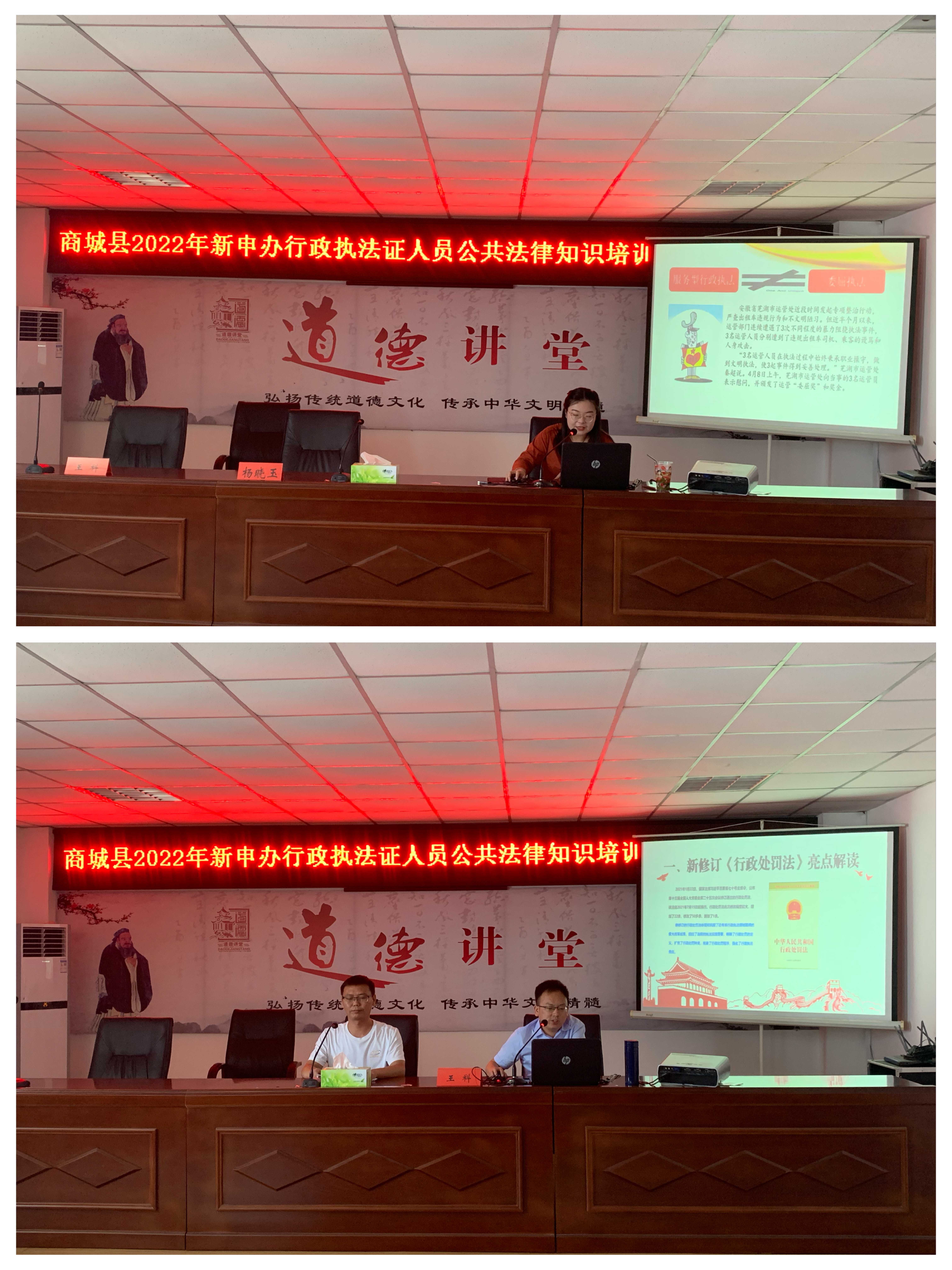 為進一步加強全縣行政執(zhí)法隊伍建設(shè),規(guī)范行政執(zhí)法行為,提升行政執(zhí)法人員法律素養(yǎng)和執(zhí)法水平,推進嚴(yán)格規(guī)范公正文明執(zhí)法,按照省、市關(guān)于做好行政執(zhí)法人員申領(lǐng)執(zhí)法證工作的要求,8月5日上午,商城縣開展2022年新申辦行政執(zhí)法證人員公共法律知識培訓(xùn)會。會議由縣司法局黨組成員、副局長楊曉玉主持。全縣縣直各單位、鄉(xiāng)鎮(zhèn)(街道)新申辦行政執(zhí)法證人員參加了培訓(xùn)會。