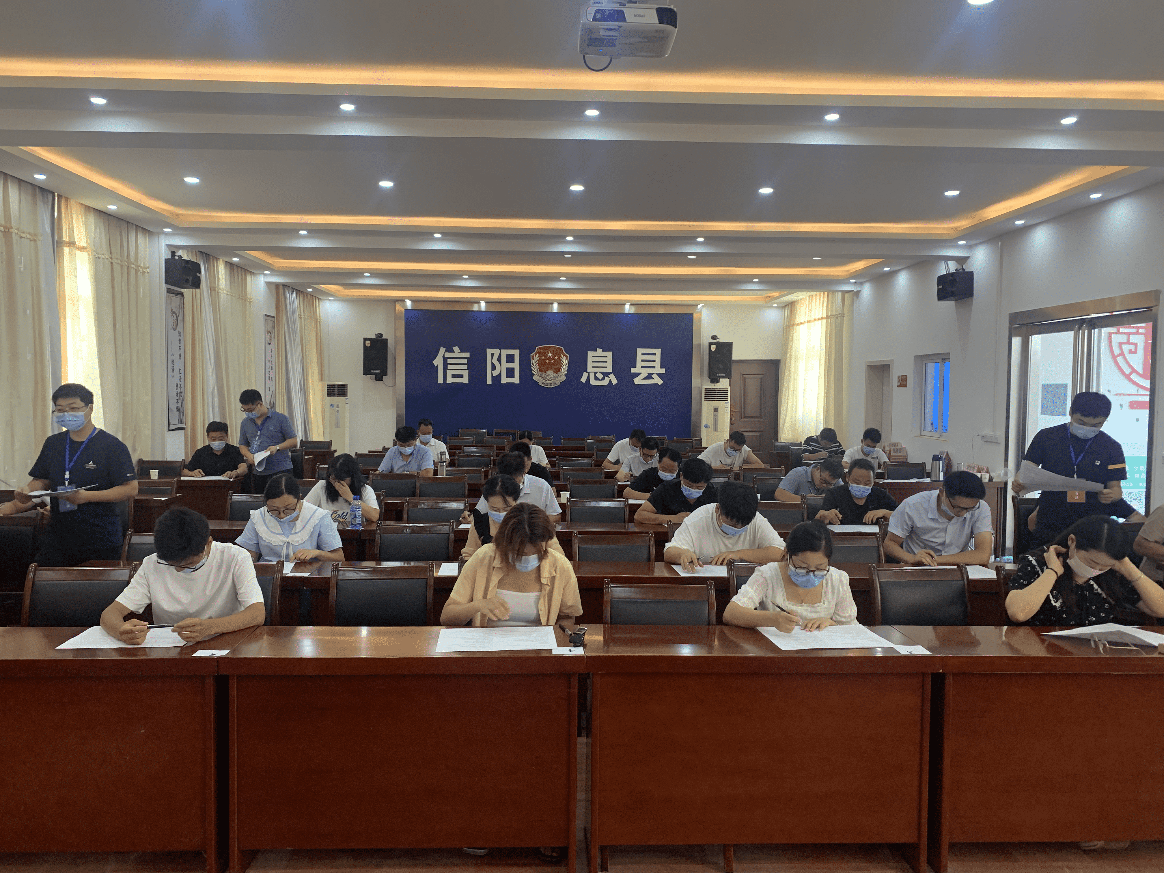 8月9日上午,息縣分兩場組織開展2022年新申辦行政執(zhí)法證人員公共法律知識考試。已參加公共法律知識培訓(xùn)的71名新申辦行政執(zhí)法證人員參加了考試。本次考試采取閉卷形式,市司法局行政執(zhí)法監(jiān)督科科長王鈺文同志蒞臨現(xiàn)場巡考,縣司法局4名工作人員參與全程監(jiān)考。