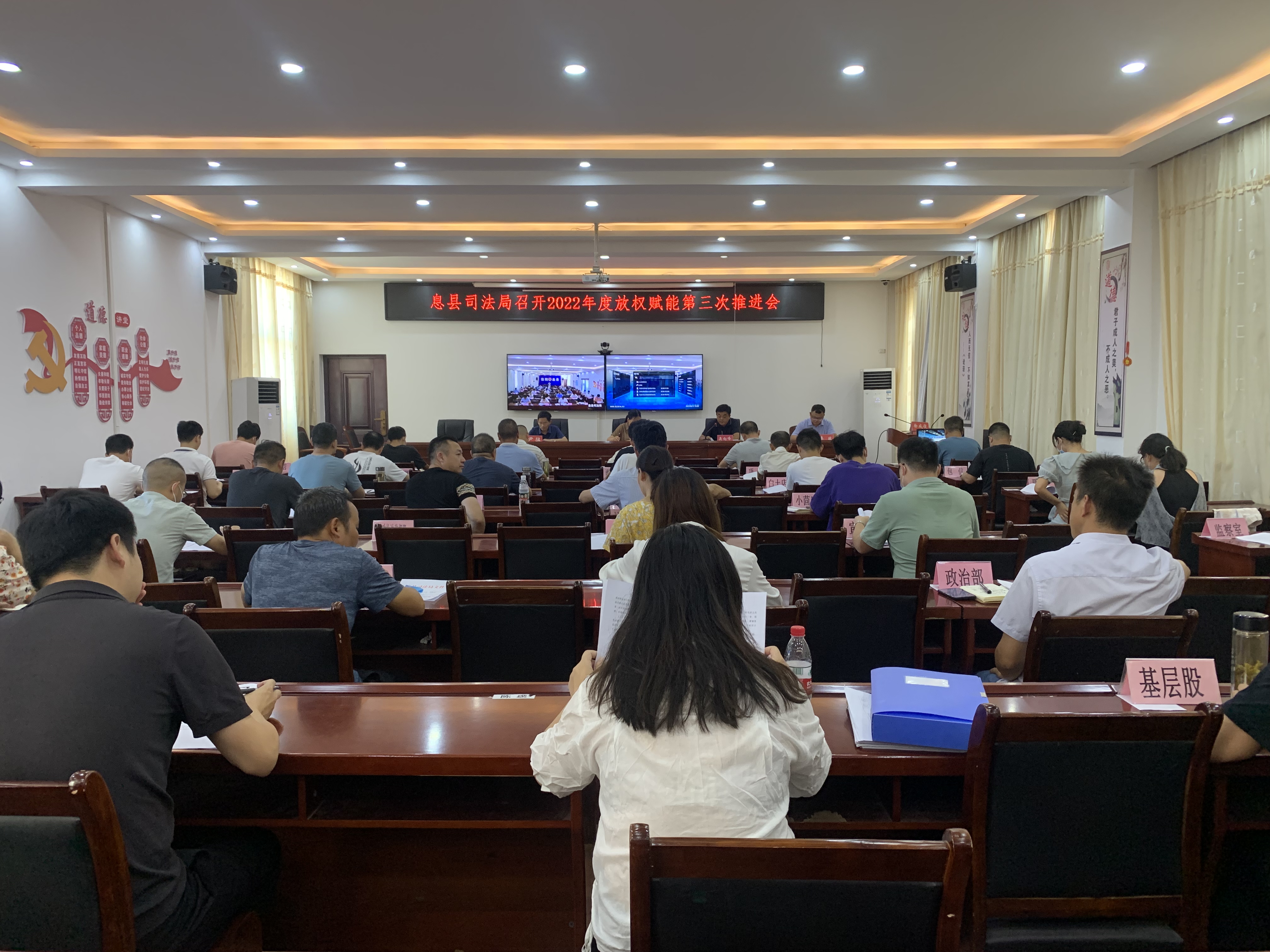 為推動縣域經(jīng)濟(jì)做大做強(qiáng),增強(qiáng)縣域發(fā)展活力,提升基層社會管理和公共服務(wù)水平。8月11日,息縣司法局黨組書記、局長張濤主持召開2022年度放權(quán)賦能第三次推進(jìn)會。息縣司法局全體在編在崗人員參會。