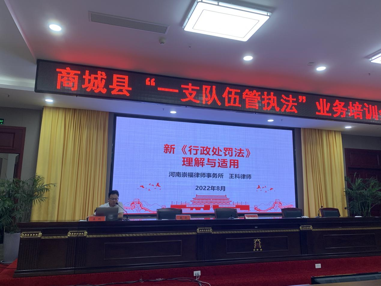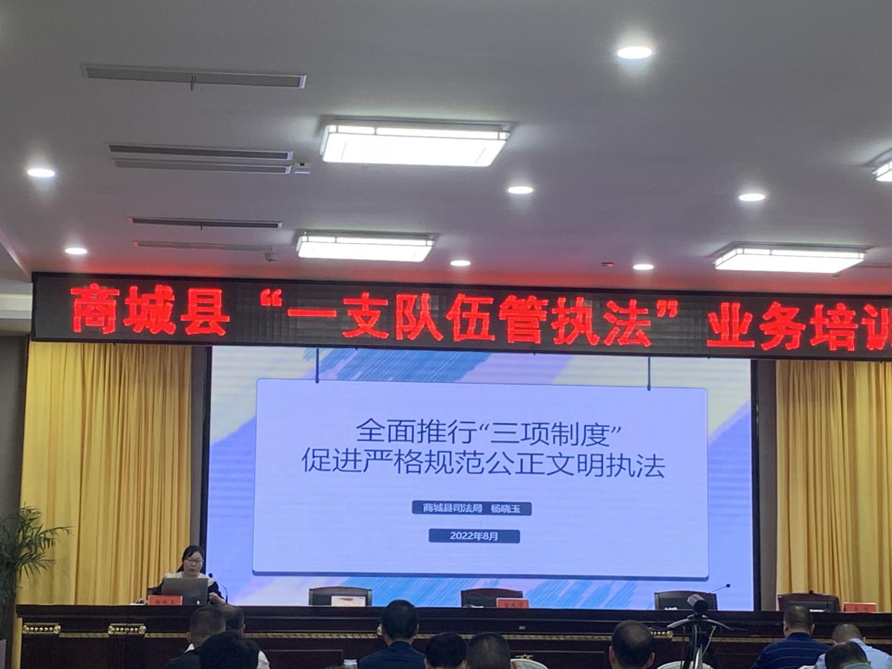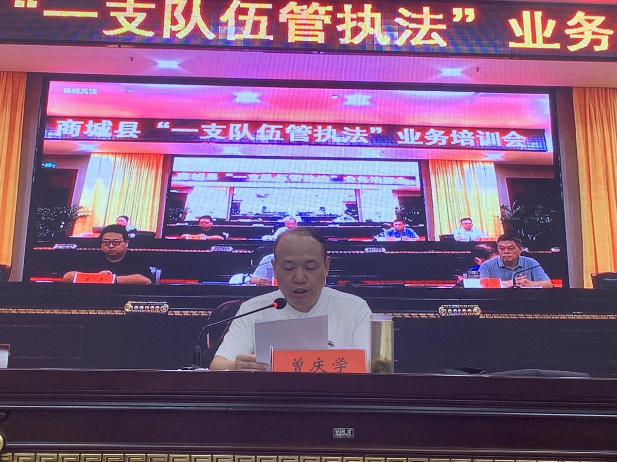 為進(jìn)一步加強(qiáng)鄉(xiāng)鎮(zhèn)(街道)綜合行政執(zhí)法隊(duì)伍建設(shè),提高鄉(xiāng)鎮(zhèn)(街道)行政執(zhí)法人員的行政執(zhí)法能力和水平,8月16日上午,商城縣司法局在錦繡會(huì)堂桂花樓五樓會(huì)議室召開(kāi)了“一支隊(duì)伍管執(zhí)法”業(yè)務(wù)培訓(xùn)會(huì)。會(huì)議由縣司法局黨組成員、副局長(zhǎng)楊曉玉主持,縣黨建統(tǒng)領(lǐng)基層治理領(lǐng)導(dǎo)小組專職副主任、縣委組織部副部長(zhǎng)曾慶學(xué)出席培訓(xùn)會(huì)并作動(dòng)員講話,縣司法局黨組書(shū)記、局長(zhǎng)王水、縣委組織部部務(wù)委員,組織一室主任戴濤出席了會(huì)議。