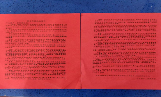 三是用好一張宣傳頁(yè)。宣傳是做好綜合行政執(zhí)法工作的必要方法。將與廣大商戶、居民生活密切相關(guān)的諸如店外經(jīng)營(yíng)、私搭亂建等近10多項(xiàng)事項(xiàng)的規(guī)定及處罰依據(jù),制作成一張綜合行政執(zhí)法宣傳頁(yè)。在管理區(qū)域內(nèi)發(fā)放,廣泛宣傳,使轄區(qū)居民對(duì)此次下放鄉(xiāng)鎮(zhèn)的權(quán)限事項(xiàng)有了詳細(xì)的了解。