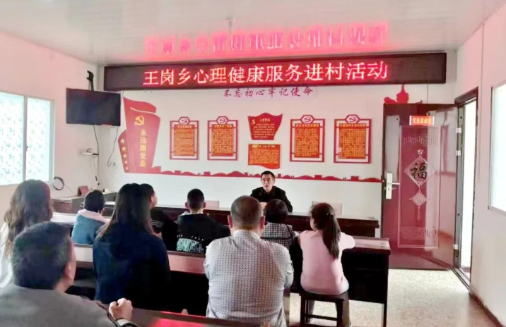 在王崗村黨員活動室給王崗中心學校學生代表頒發(fā)心理健康教育相關(guān)手冊,提高心理健康素質(zhì)和人際交往能力。