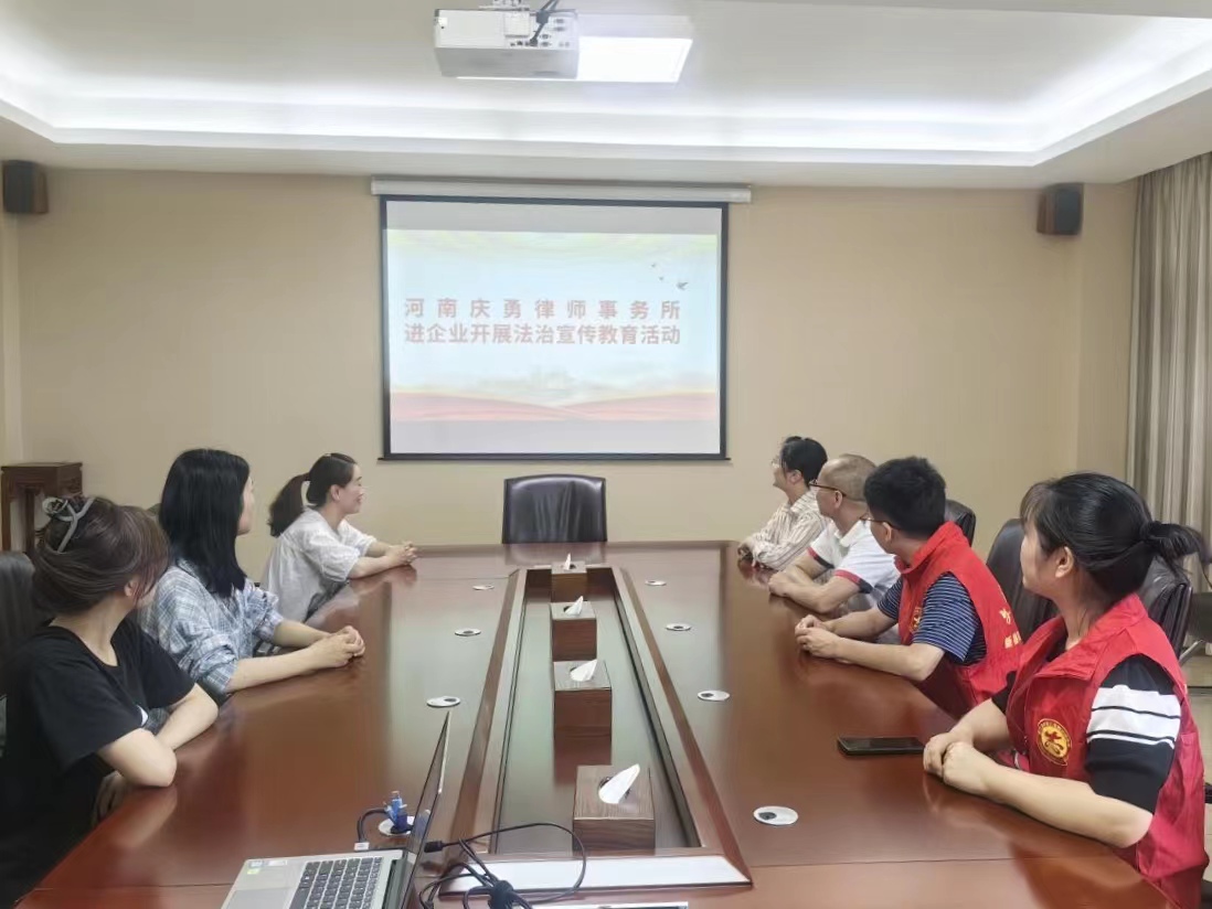 為進(jìn)一步優(yōu)化法治化營商環(huán)境,引導(dǎo)企業(yè)及員工不斷增強(qiáng)法治意識,促進(jìn)企業(yè)健康發(fā)展,日前,新縣法學(xué)會、司法局、河南慶勇律師事務(wù)所走進(jìn)河南九龍集團(tuán)開展法治宣傳教育進(jìn)企業(yè)活動。