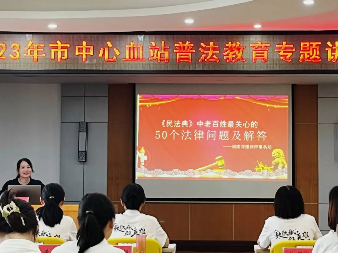 為深入開展《民法典》普法宣傳工作,提升群眾法治觀念和法律素養(yǎng),增強(qiáng)廣大血站干部職工遵法、守法、學(xué)法、用法的自覺性和主動(dòng)性,近日,平橋區(qū)法學(xué)會(huì)邀請河南淳謹(jǐn)律師事務(wù)所組建宣講團(tuán)前往信陽市中心血站開展“普法教育專題講座——《民法典》知識(shí)講座”活動(dòng)。