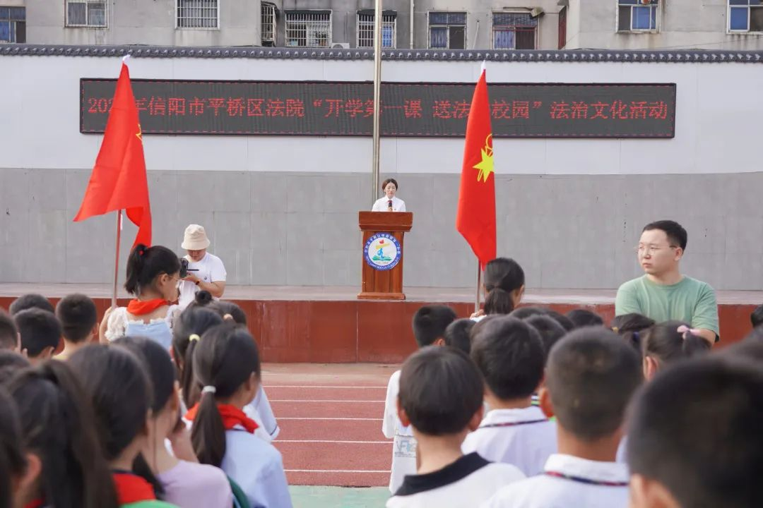 第二組宣講團(tuán)走進(jìn)明港鎮(zhèn)第一小學(xué),為全校1800余名師生講授秋季開學(xué)法治“第一課”。
