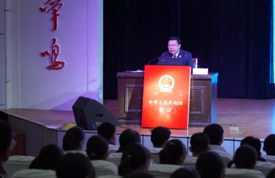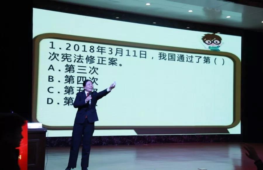 活動中,市檢察院檢察長、該校法治副校長朱孟俠以“與法律同行 共建陽光校園”為主題,用通俗的語言,深入淺出地為同學們講解了國家憲法日的由來、憲法的基本知識,并利用PPT演示開展以案說法,講述“一號檢察建議”背后的案例,同時解讀了與同學們密切相關的常見犯罪及典型案例。希望同學們認真學習憲法,樹立憲法意識,維護憲法權威,養(yǎng)成遵紀守法的良好習慣,學會用憲法和法律維護自身合法權益,當好法治中國接班人?,F(xiàn)場市檢察院第五檢察部干警與同學進行了憲法知識競答互動。