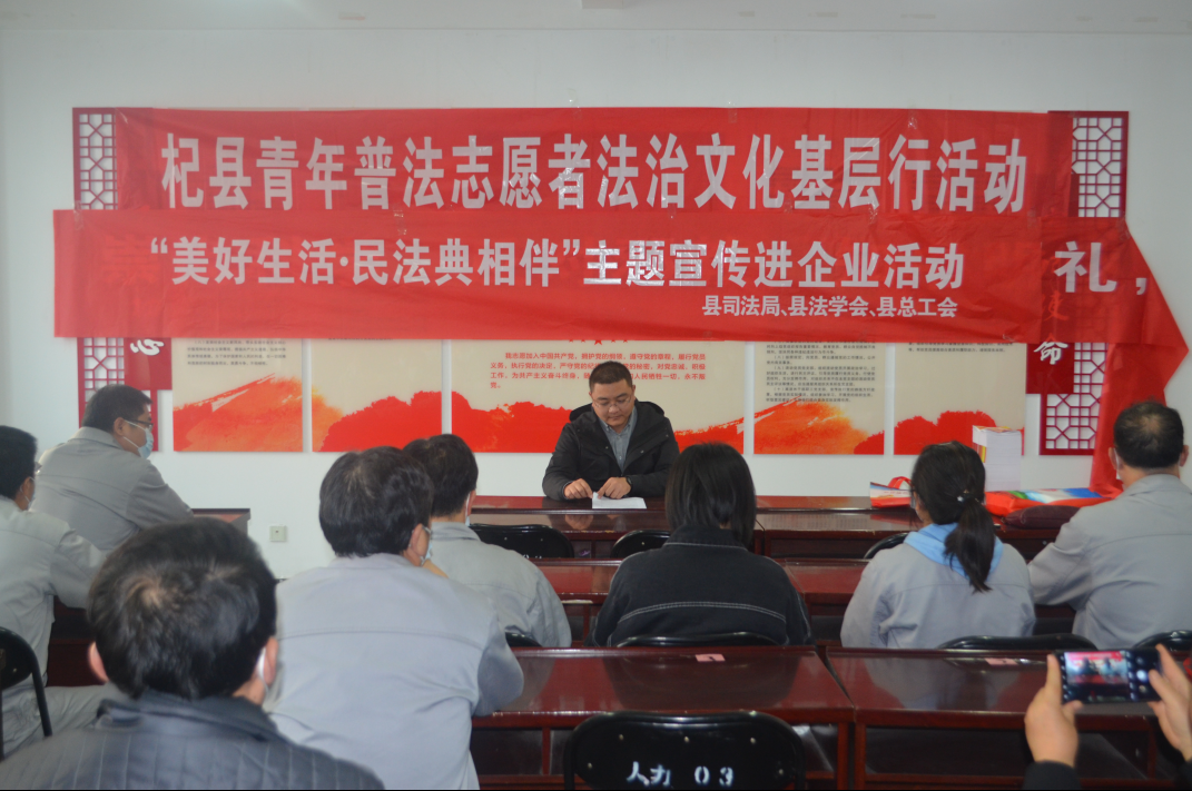 為進一步優(yōu)化營商環(huán)境,保障企業(yè)健康發(fā)展,11月4日下午,杞縣法學會聯(lián)合縣司法局、總工會等一行前往龍宇化工,開展送法進企業(yè)《民法典》普法宣傳活動,向企業(yè)宣講《民法典》等法律法規(guī),龍宇化工黨員干部職工代表共計30余人參會。