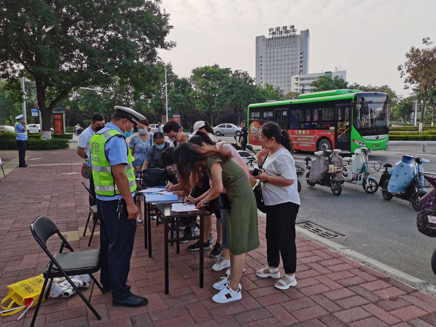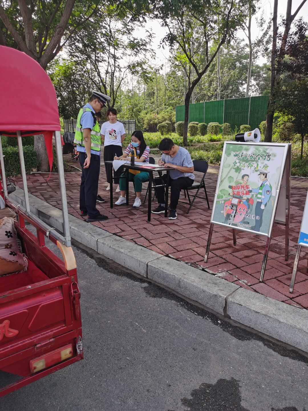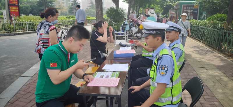 為深入推進(jìn)全市“一盔一帶”安全守護(hù)行動(dòng),切實(shí)提高社會(huì)群眾交通安全意識(shí),2020年端午節(jié)3天假期,鶴壁市法學(xué)會(huì)團(tuán)體會(huì)員市公安局交通管理支隊(duì)廣大民警輔警放棄休假,在城區(qū)華夏南路與淮河路、鶴煤大道與興鶴大街、嵩山路與黃河路、興鶴大街與淇濱大道、興鶴大街與黃河路、淇濱大道與嵩山路、鶴煤大道與嵩山路、華夏南路與鶴煤大道等主要路口設(shè)置8處執(zhí)勤崗點(diǎn),利用擺放圖板、懸掛標(biāo)語(yǔ)、發(fā)放彩頁(yè)、播放錄音、設(shè)立咨詢臺(tái)等“擺攤”形式,對(duì)部分摩托車、電動(dòng)自行車騎乘人員未佩戴頭盔,汽車駕乘人員未系安全帶等交通違法違規(guī)行為。通過(guò)抄寫、轉(zhuǎn)發(fā)交通安全知識(shí)、法律法規(guī),協(xié)助執(zhí)勤、現(xiàn)場(chǎng)處罰等形式,大張旗鼓地開展“一盔一帶”集中宣傳教育活動(dòng)。