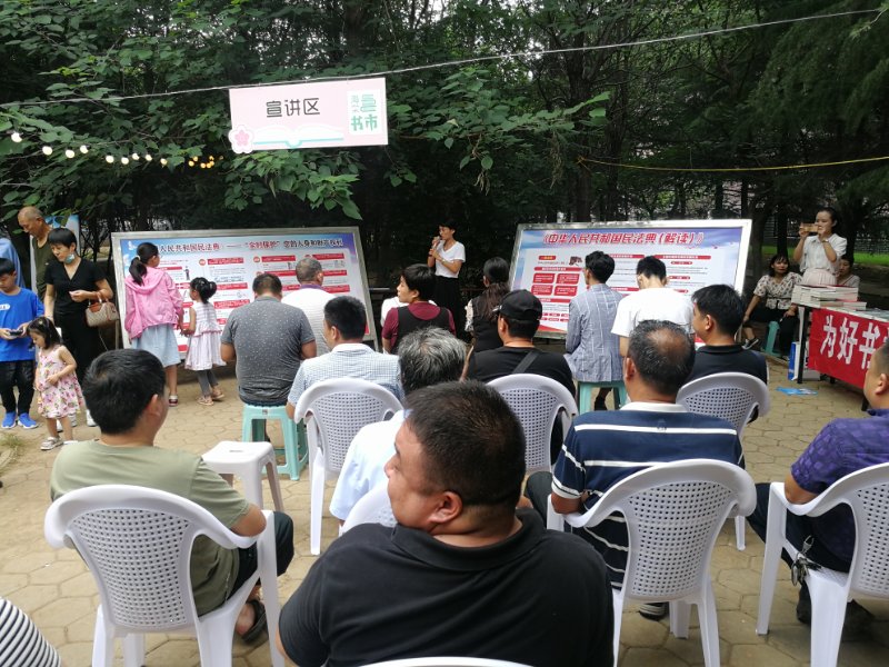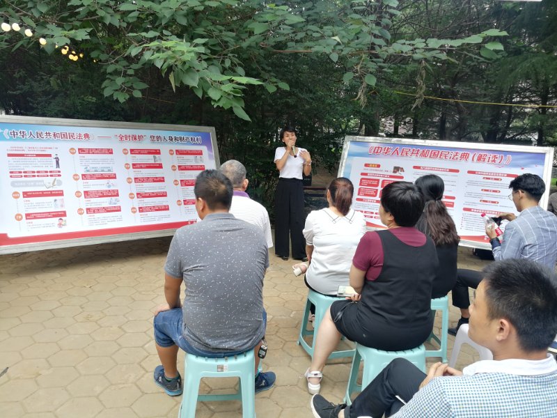 8月22日下午,淇濱區(qū)法治文化基層行活動在黎陽路街道佳和社區(qū)海棠巷舉行。邀請律師耿寧杰和王允為在場群眾解讀《民法典》,用生動形象的典型案例為群眾講解從出生到死亡《民法典》是如何維護人民權益的。