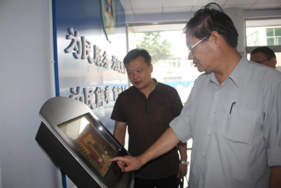 29日下午,安陽市政法委副書記、法學(xué)會常務(wù)副會長劉躍勝,法學(xué)會副秘書長臧廷進,冒雨到陵陽鎮(zhèn),實地查看了法律服務(wù)站多瀛智能在線法律咨詢觸摸屏的運行情況;并就法律服務(wù)站如何開展法治宣傳、法律服務(wù)、矛盾化解等方面工作給予了具體指導(dǎo)。