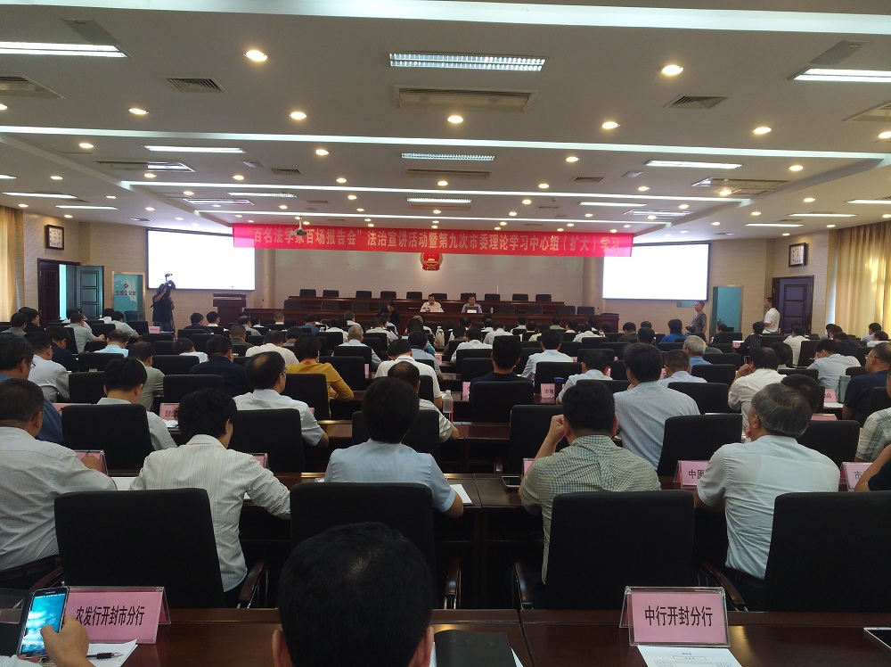 9月7日下午,開封市“百名法學(xué)家百場(chǎng)報(bào)告會(huì)”法治宣講活動(dòng)暨第九次市委理論學(xué)習(xí)中心組(擴(kuò)大)學(xué)習(xí)在開封市政府會(huì)議室舉行,市委書記吉炳偉主持學(xué)習(xí)活動(dòng)。侯紅、黃道功、閻紅心、秦保強(qiáng)、王新軍、劉銀生、付磊、何偉、蔡松濤等市委中心組成員和市委常務(wù)副秘書長(zhǎng),市人大、市政府、市政協(xié)秘書長(zhǎng),市委各部委常務(wù)副職;各縣區(qū)委、自貿(mào)區(qū)開封片區(qū)管委會(huì)主要負(fù)責(zé)人;市直各單位、駐汴單位、大專院校、人民團(tuán)體主要負(fù)責(zé)人; 市法院、市檢察院、市旅游委、市總工會(huì)、開封大學(xué)、開封文化藝術(shù)學(xué)院分管負(fù)責(zé)人共計(jì)二百余人參加了學(xué)習(xí)。