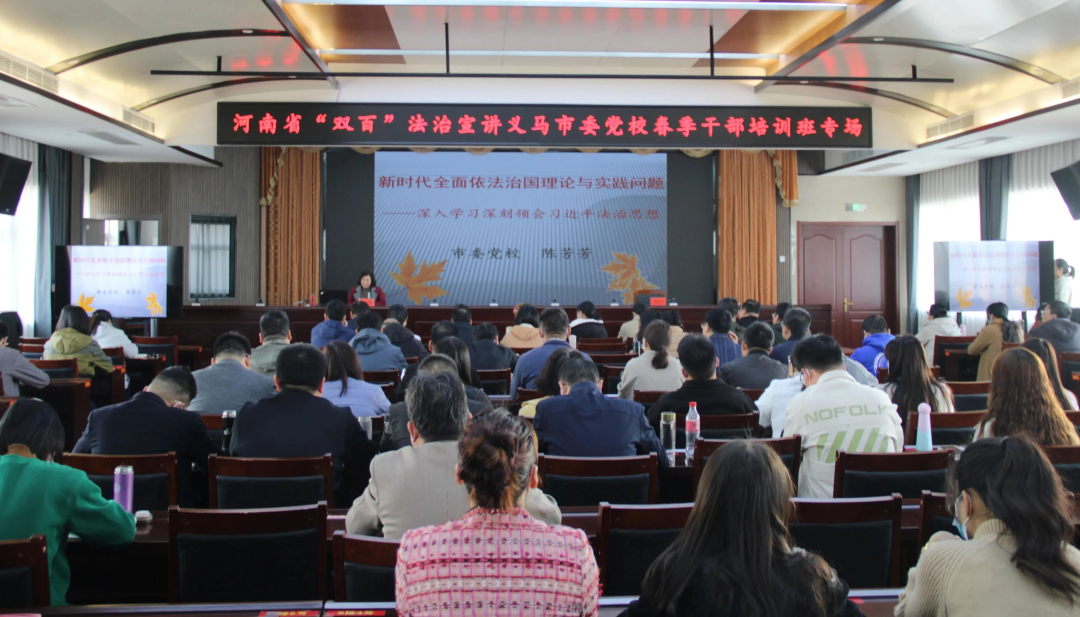 近日,河南省“百名法學家百場報告會”法治宣講義馬市委黨校春季干部培訓班專場報告會在義馬市委黨校舉行。三門峽市委黨校副教授、公共管理教研室主任陳芳芳教授作專場報告。會議由義馬市委政法委常務副書記、市法學會常務副會長王凌中主持。