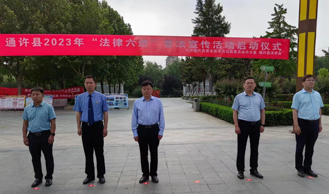 5月19日,由通許縣委依法治縣委員會、縣法學會組織舉辦的2023年“法律六進”普法宣傳活動啟動儀式在咸平廣場舉行,縣委常委、政法委書記、縣法學會會長、縣依法治縣委員會辦公室主任韓俊濤,副縣長、公安局局長、縣法學會副會長李健,縣檢察院檢察長、縣法學會副會長阮志鵬參加活動。啟動儀式由李健主持。