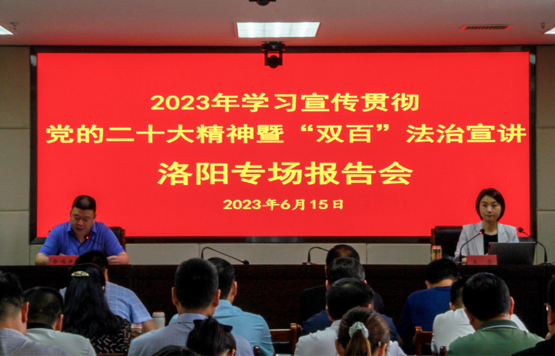 6月15日,洛陽市委政法委、市法學(xué)會(huì)組織舉行學(xué)習(xí)宣傳貫徹黨的二十大精神暨“百名法學(xué)家百場(chǎng)報(bào)告會(huì)”法治宣講洛陽專場(chǎng)活動(dòng),邀請(qǐng)河南省青年理論宣講專家、黨的二十大精神市級(jí)宣講團(tuán)成員、市委黨校法學(xué)副教授王蕾以“堅(jiān)持全面依法治國,推進(jìn)法治中國建設(shè)”為主題作輔導(dǎo)報(bào)告,市委政法委副書記、市法學(xué)會(huì)秘書長(zhǎng)申偉民主持會(huì)議。