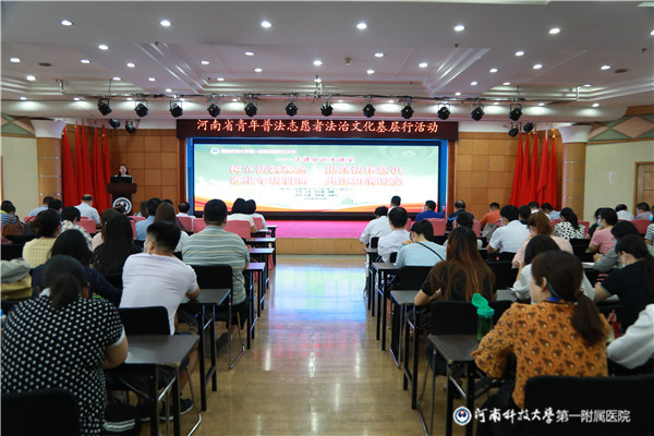 9月16日下午,在洛陽市法學會醫(yī)事法學研究會的組織協(xié)調下,河南省青年普法志愿者法治文化基層行博士宣講團走進河南科技大學第一附屬醫(yī)院舉辦《民法典》宣講活動。醫(yī)事法學研究會副會長兼秘書長魏海濤,醫(yī)院黨委副書記、工會主席李群,黨委副書記趙瑩等同志,以及各分工會主席和職工代表共200余人現場聆聽。