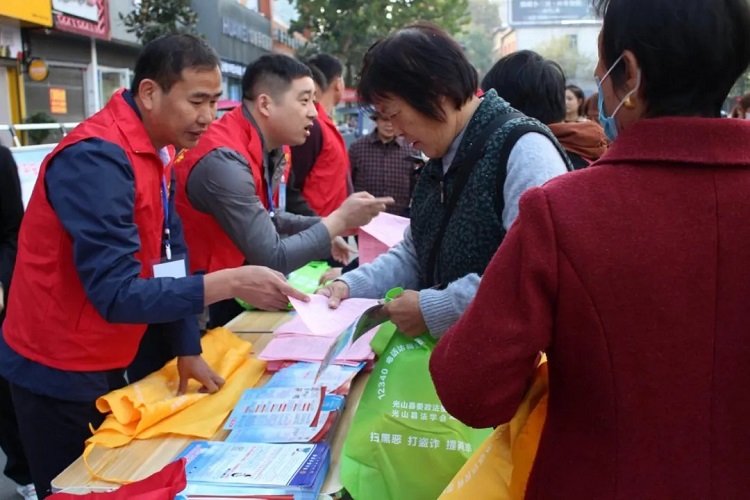 為扎實推進基層青年普法宣傳工作的深入開展,10月27日上午,光山縣法學會組織縣政法各部門的青年普法志愿者在正大街開展普法基層行活動。