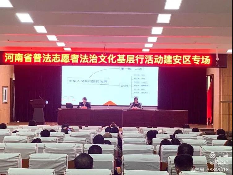 11月10日,河南省青年普法志愿者法治文化基層行活動(dòng)建安區(qū)專場開講。宣講活動(dòng)在許昌市建安區(qū)委黨校二樓會(huì)議室舉行,本次報(bào)告會(huì)邀請(qǐng)了中國人民大學(xué)民商法博士、河南卓通律師事務(wù)所主任候方為大家講授民法典,建安區(qū)法學(xué)會(huì)副會(huì)長兼秘書長邢麗主持會(huì)議。建安區(qū)尚集產(chǎn)業(yè)集聚區(qū)的企業(yè)負(fù)責(zé)人共計(jì)100余人參會(huì)。