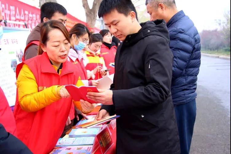 活動現(xiàn)場,各單位普法志愿者們身穿紅色馬甲,通過懸掛橫幅、擺放宣傳版面、發(fā)放宣傳書籍、資料、設(shè)置咨詢臺等形式,向過往的群眾們宣傳平安建設(shè)、憲法、民法典、掃黑除惡、消防安全、禁毒鏟毒、國家安全、愛路護路、反邪教、防范非法集資、預(yù)防電信詐騙等平安建設(shè)有關(guān)知識,向群眾介紹近年來臨潁縣平安建設(shè)成果,以征得群眾對臨潁縣平安建設(shè)和政法工作的理解和支持;向群眾講解法律法規(guī)等法律知識,以增強群眾守法、用法意識,進一步提升群眾對平安建設(shè)的知曉率和參與率。