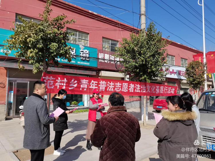 為進(jìn)一步推進(jìn)法制宣傳教育、社會矛盾化解、深入開展法制教育宣傳,開封市祥符區(qū)法學(xué)會聯(lián)合范村鄉(xiāng)綜治辦、司法所和部分網(wǎng)格員,2月18日,在范村鄉(xiāng)中心大街舉辦了以“宣傳法律知識,弘揚(yáng)法治精神”為口號的青年普法志愿者法治文化基層行宣傳活動。