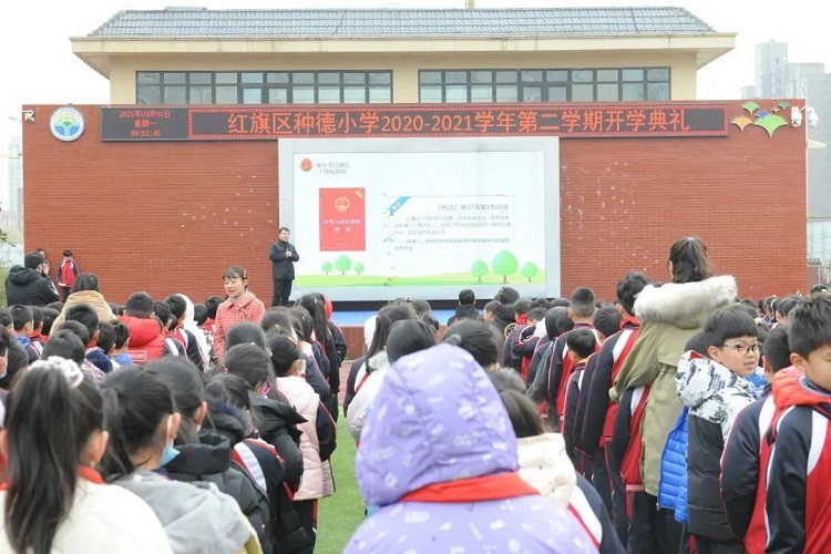 為引導(dǎo)同學(xué)們樹(shù)立正確的法治觀念,進(jìn)一步提高法治意識(shí)和自我保護(hù)能力,幫助同學(xué)們扣好法治人生“第一顆扣子”, 3月1日,新學(xué)期開(kāi)學(xué)第一天,新鄉(xiāng)市紅旗區(qū)法學(xué)會(huì)組織法學(xué)會(huì)會(huì)員劉丹到種德小學(xué)開(kāi)展法治宣傳,為全校上千名師生送上了一節(jié)量身定制的“開(kāi)學(xué)第一課”,獲得了師生廣泛好評(píng)。