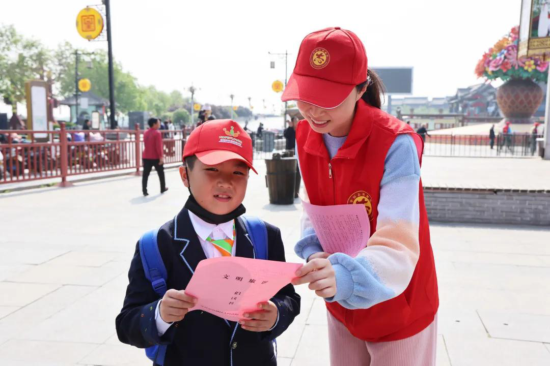 青年普法志愿者來(lái)到七盛角、清明上河園景區(qū)前,向過(guò)往游客宣傳文明旅游知識(shí),講解開(kāi)封文化底蘊(yùn),發(fā)放《文明旅游倡議書(shū)》,倡導(dǎo)游客外出旅游時(shí)做好疫情防護(hù),佩戴好口罩,弘揚(yáng)勤儉節(jié)約的中華傳統(tǒng)美德,杜絕浪費(fèi),注意公共衛(wèi)生,不亂扔垃圾、不隨地吐痰、不隨意破壞公共物品,自覺(jué)遵守文明旅游規(guī)范等文明行為。